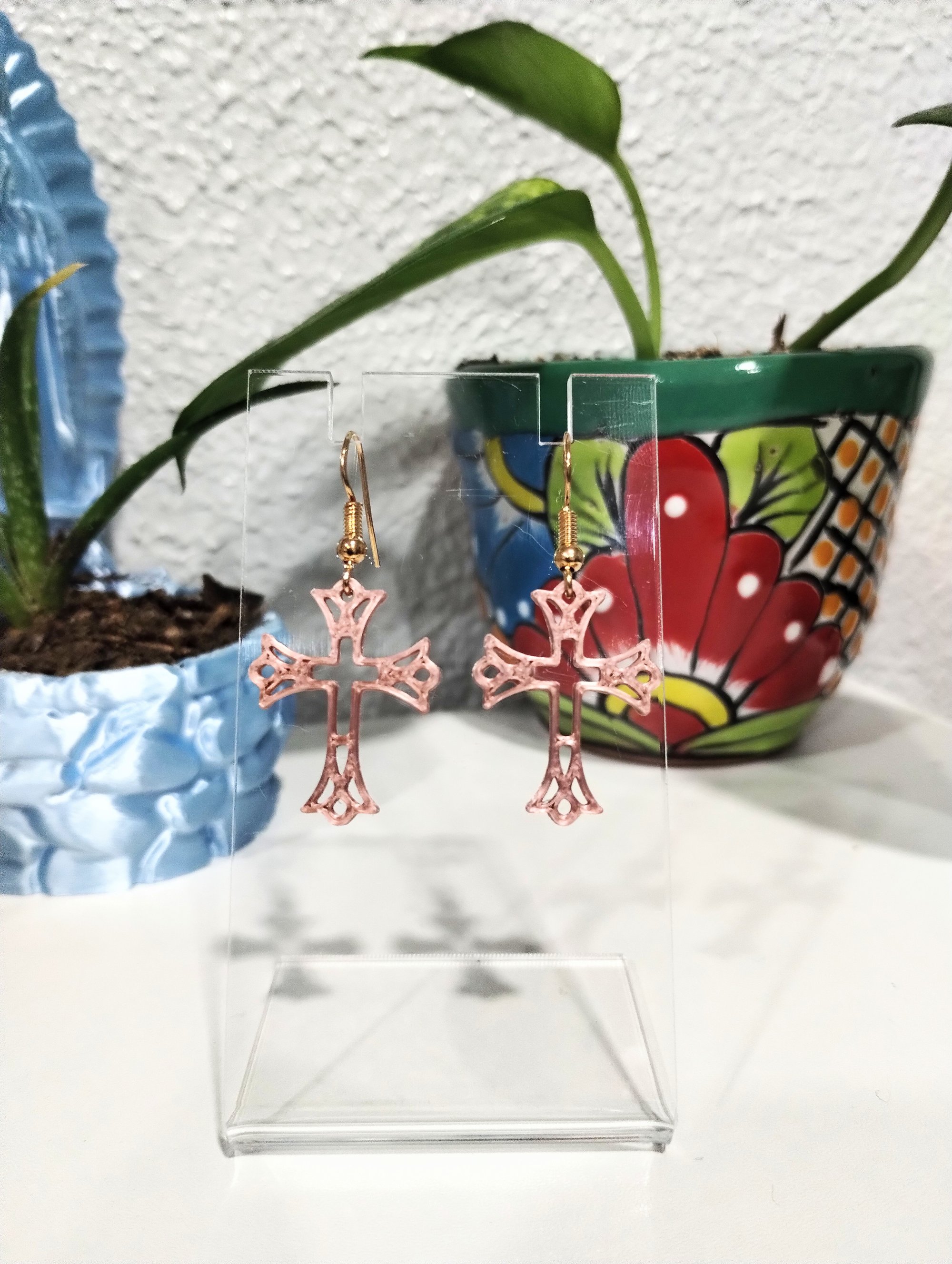 Ornate Cross Earrings – 3D Printed Silk PLA